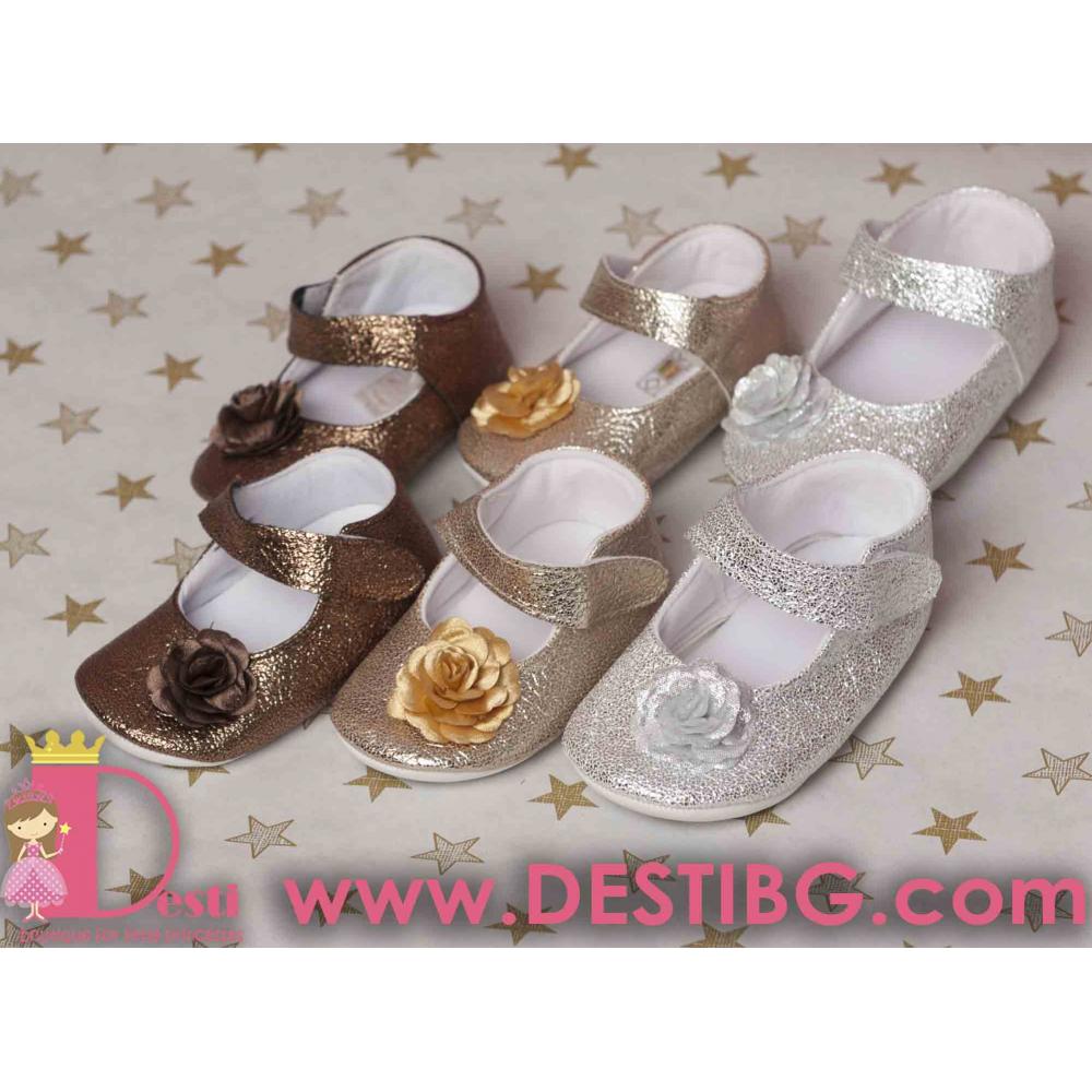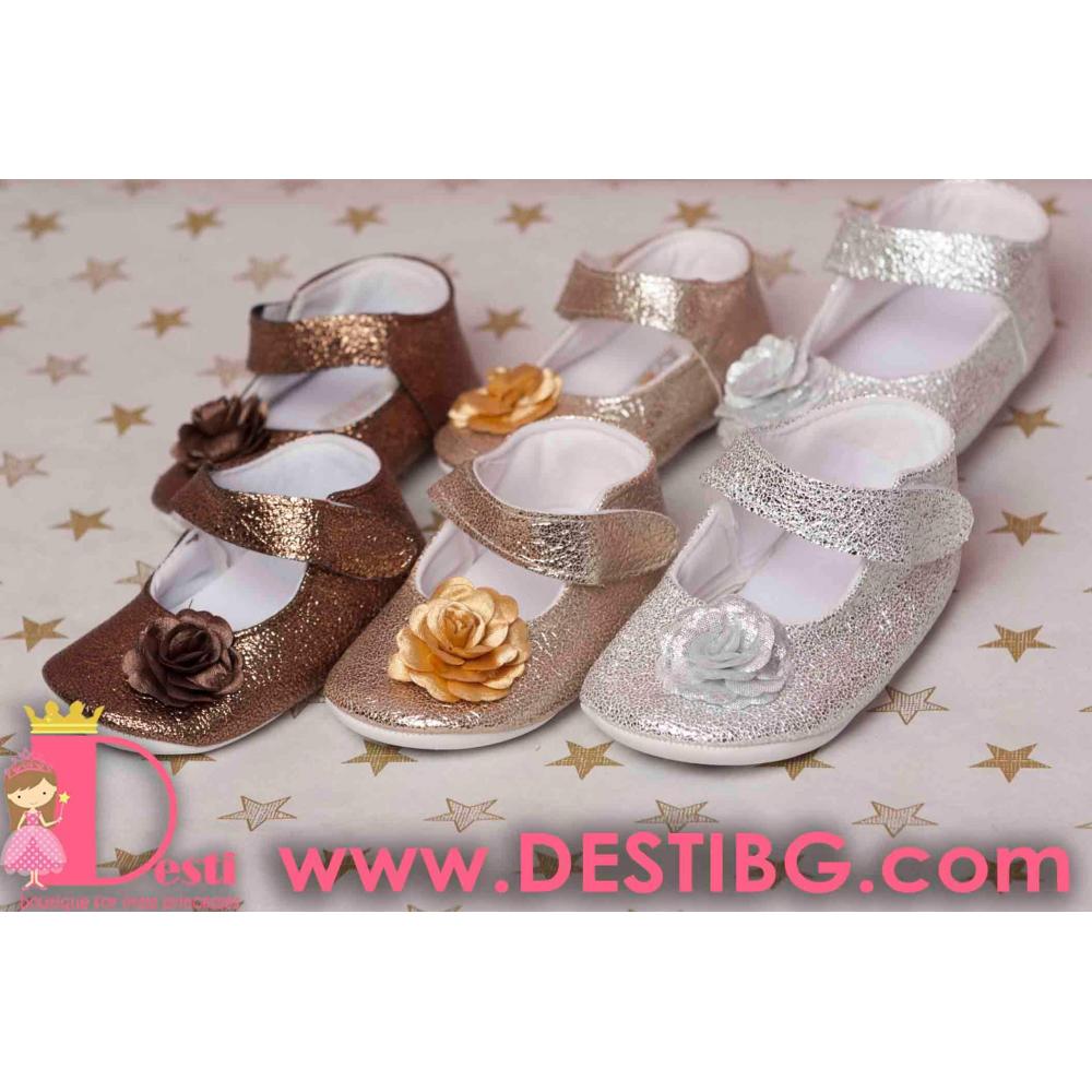 Кожени обувки златни, сребърни, кафеви с цвете