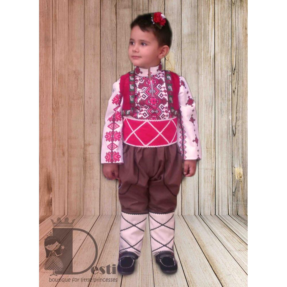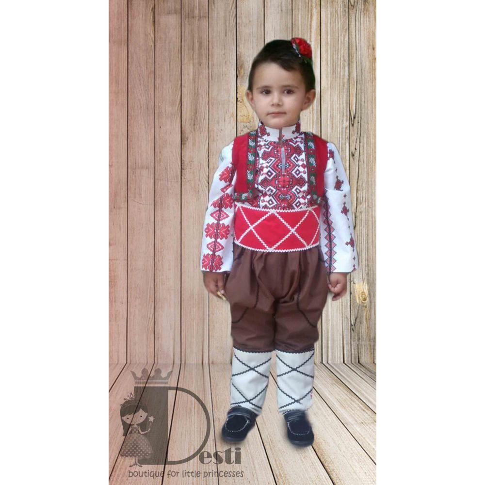 2.Стилизирана народна носия изработена от щампован памук тип "бродерия", включваща риза, потури, пояс, елек с щевици и аксесоар за калпак. Шевиците на ризата може да се различават, спрямо различните размери.