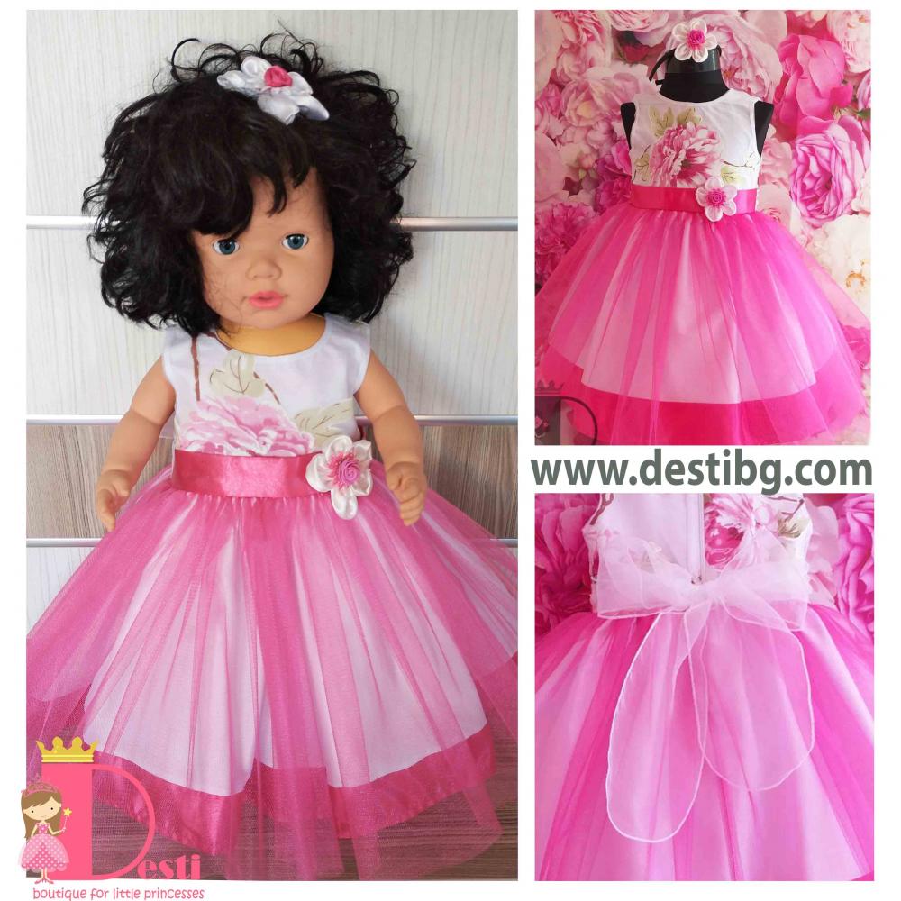 2.Роклята е изработена от нееластична органза с красиви флорални мотиви и тюл.