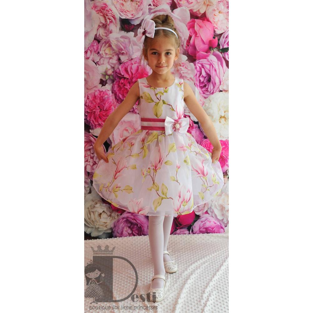 2.Роклята е изработена от нееластична органза или воал с красиви флорални мотиви.