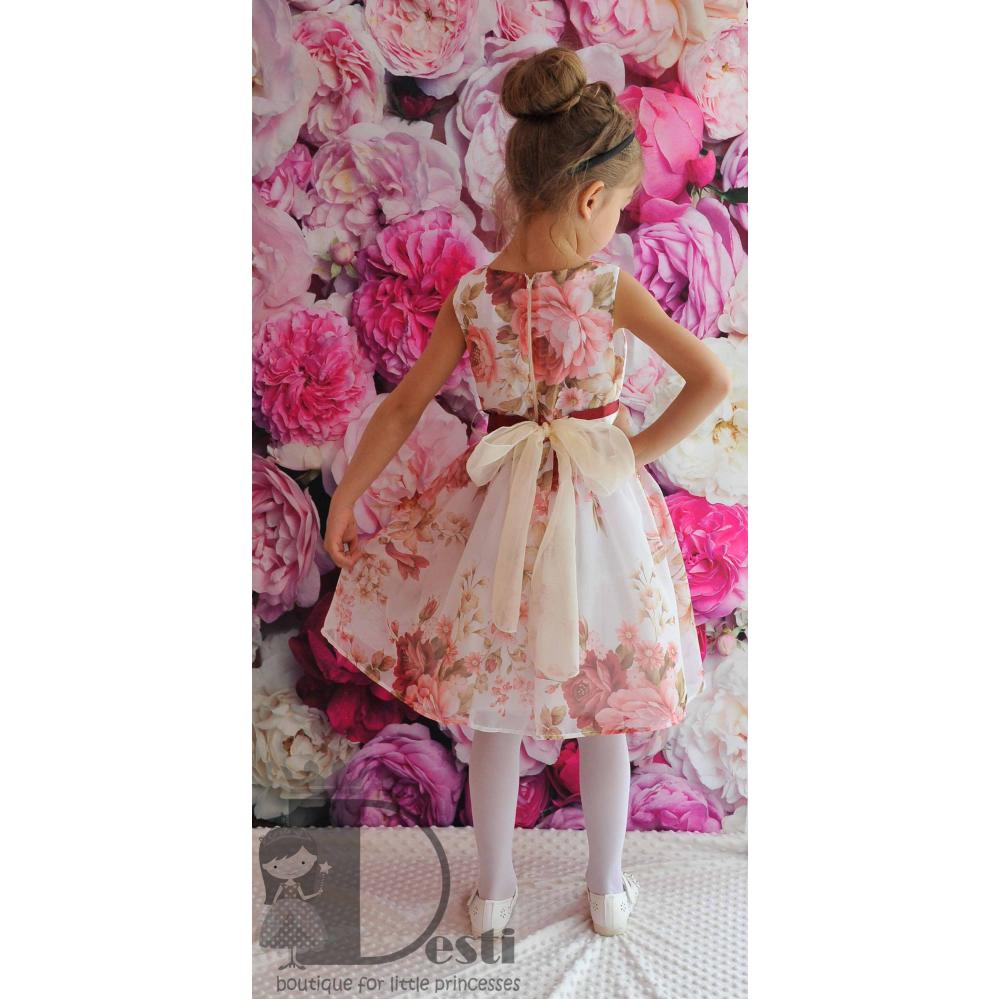 2.Роклята е изработена от нееластична органза или воал с красиви флорални мотиви.