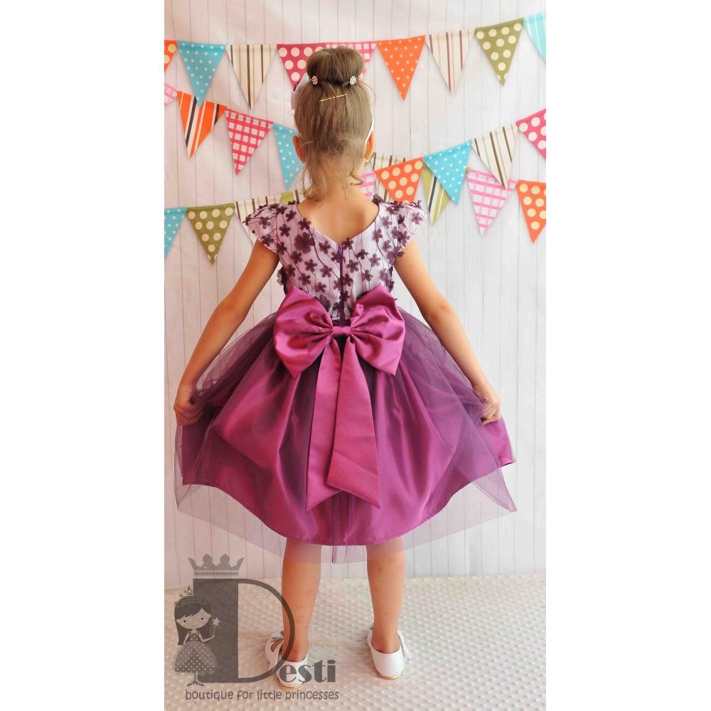Детска официална рокля тип "туту" Теди-Мод с голяма панделка - идеална за всеки специален повод на Вашите деца