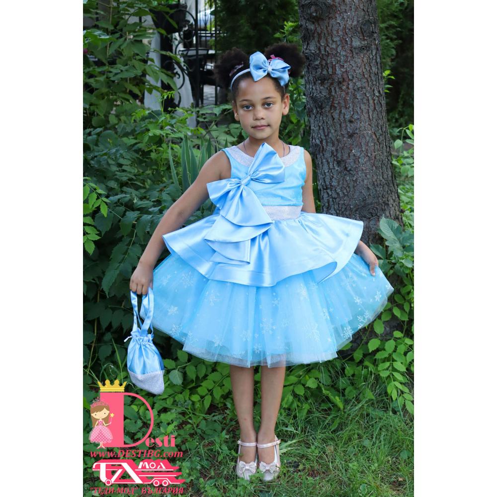 6. Талията на детето се подчертава с колан в кръста и голяма панделка.
