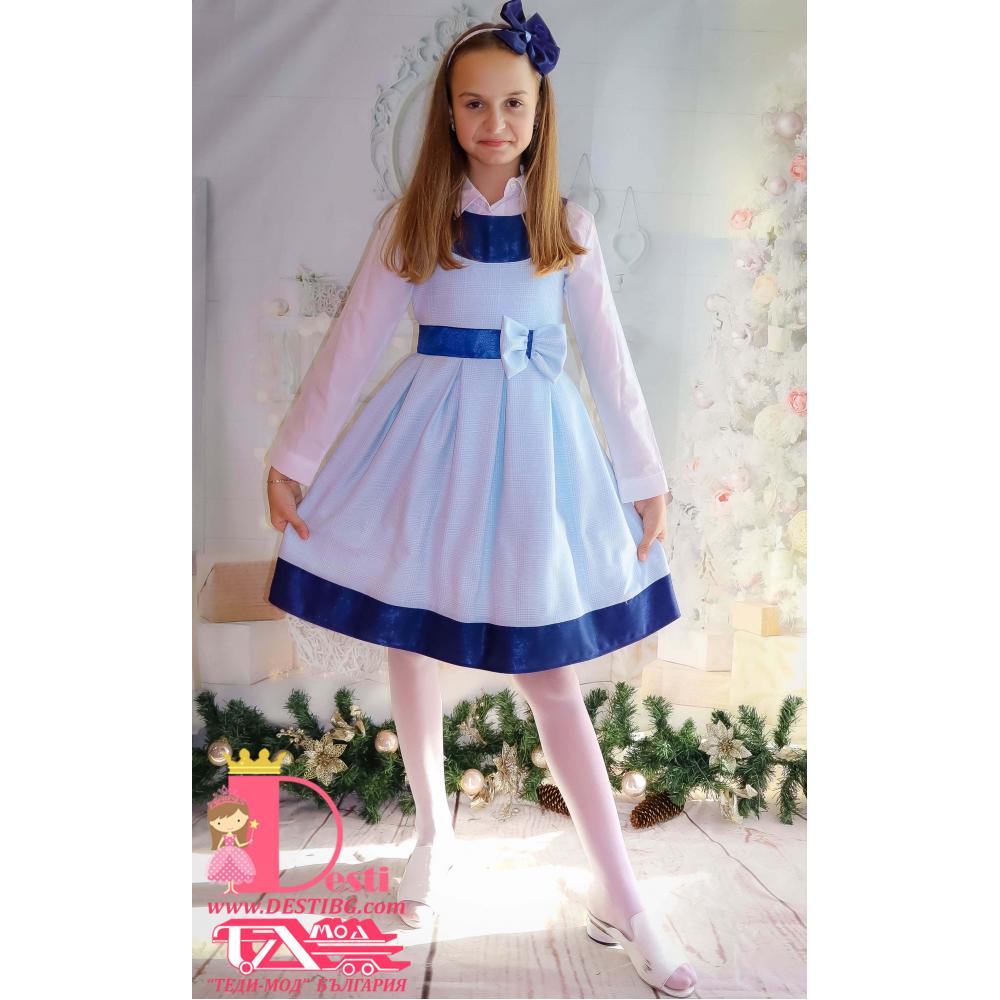 6. Талията на детето се подчертава с колан в кръста, който се връзва отзад на обикновен възел или панделка.