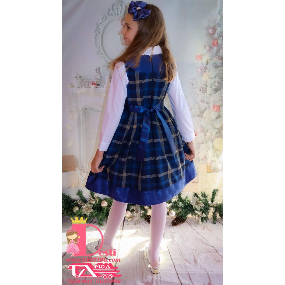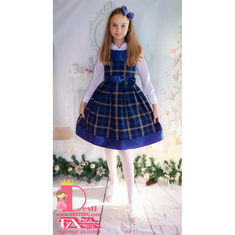 2.Роклята е изработена от лек вълнен плат каре, подходяща да се носи с долна блузка или ризка.