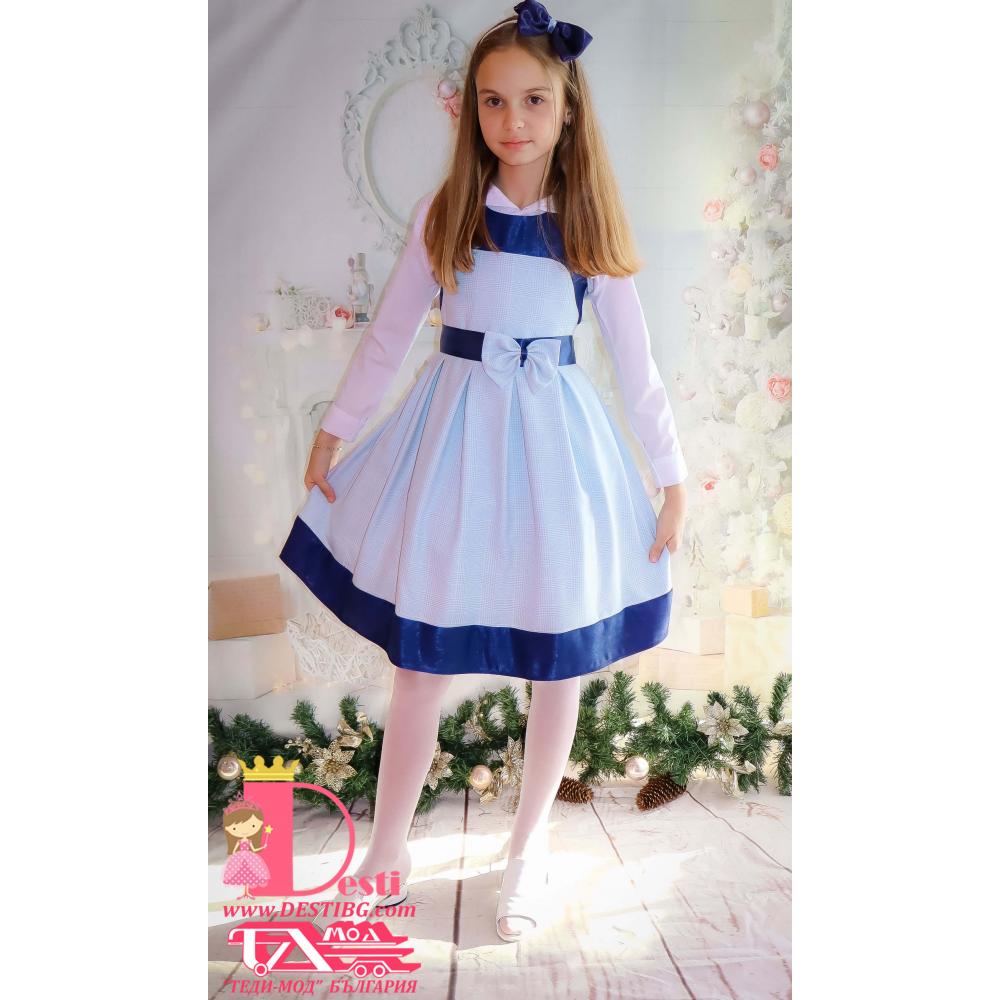 2.Роклята е изработена от лек вълнен плат каре, подходяща да се носи с долна блузка или ризка.