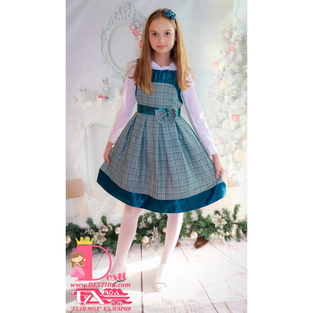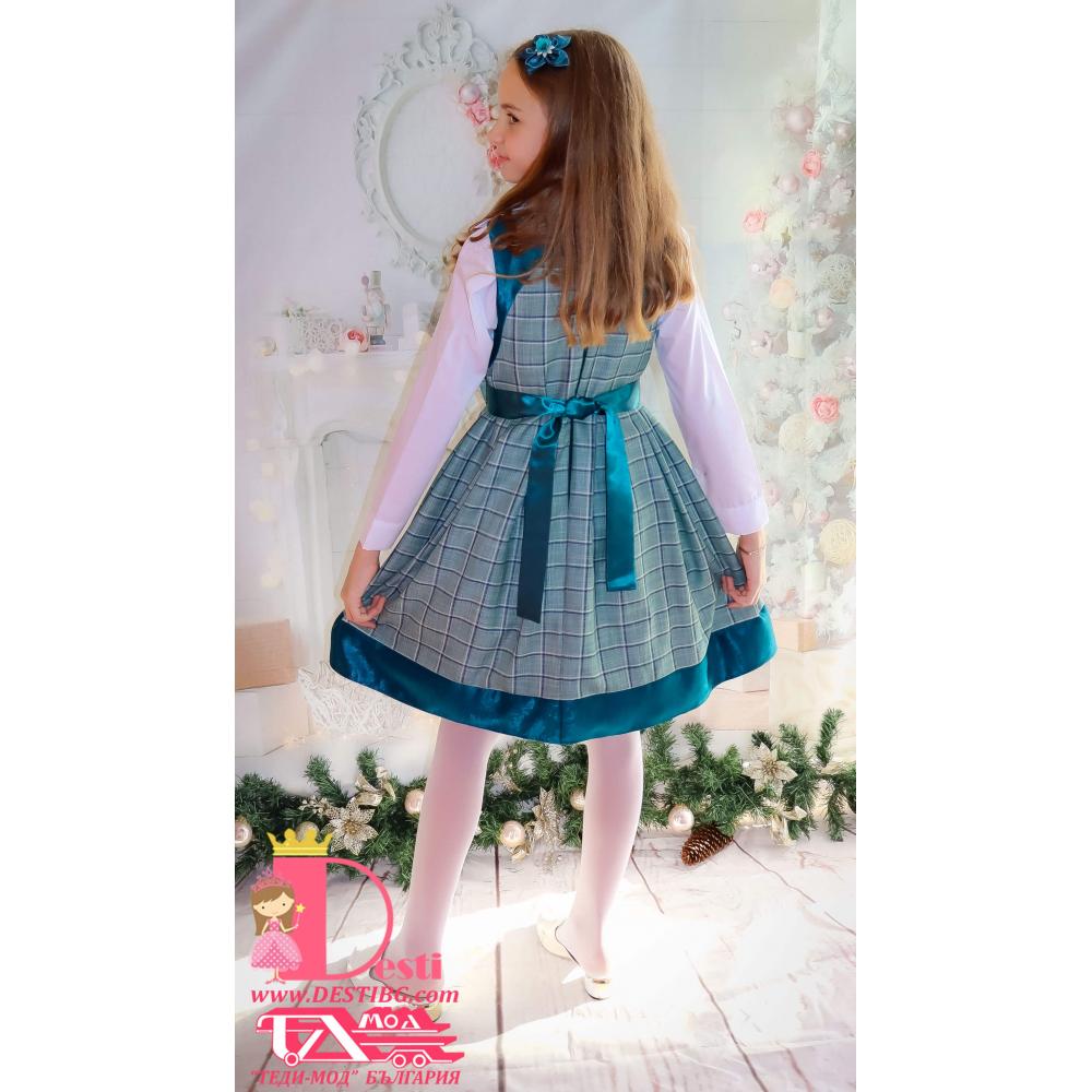 2.Роклята е изработена от лек вълнен плат каре, подходяща да се носи с долна блузка или ризка.