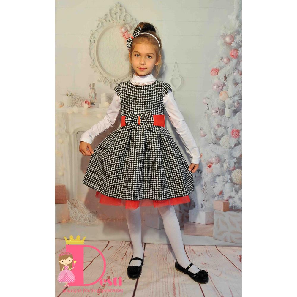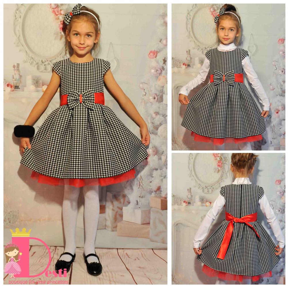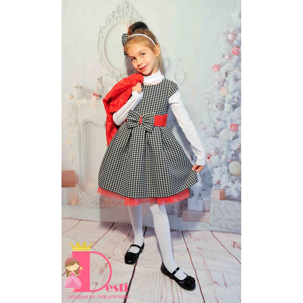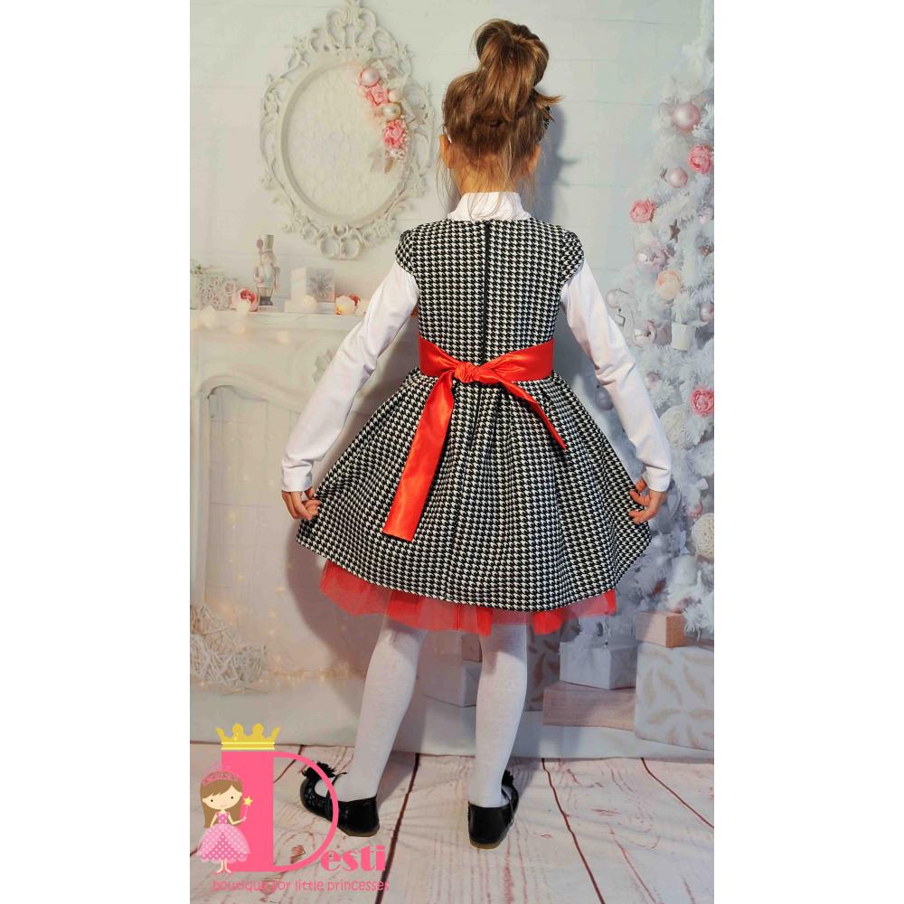 2.Роклята е изработена от вълнен пепит, подходяща да се носи с долна блузка или ризка.