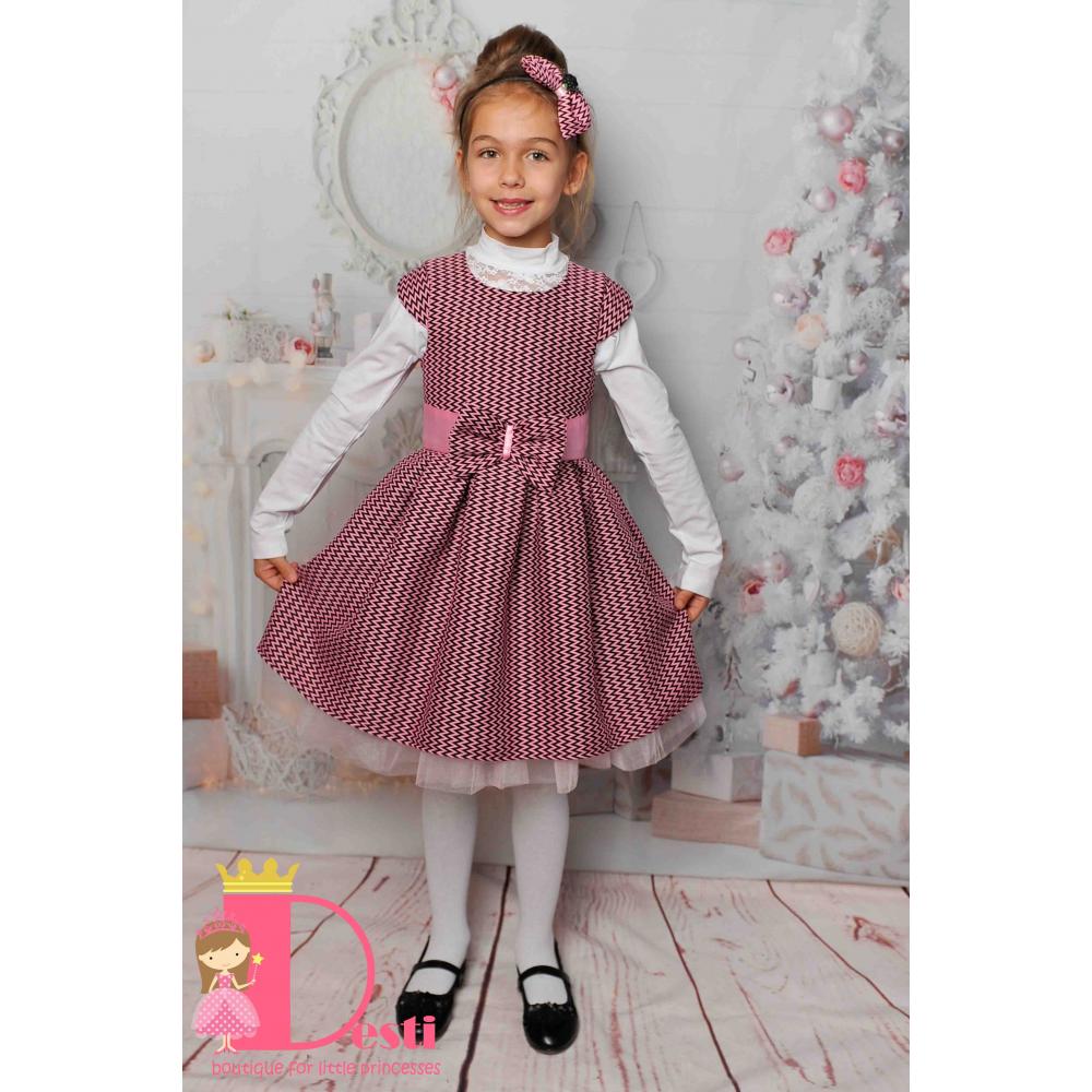 2.Роклята е изработена от вълнен пепит, подходяща да се носи с долна блузка или ризка.