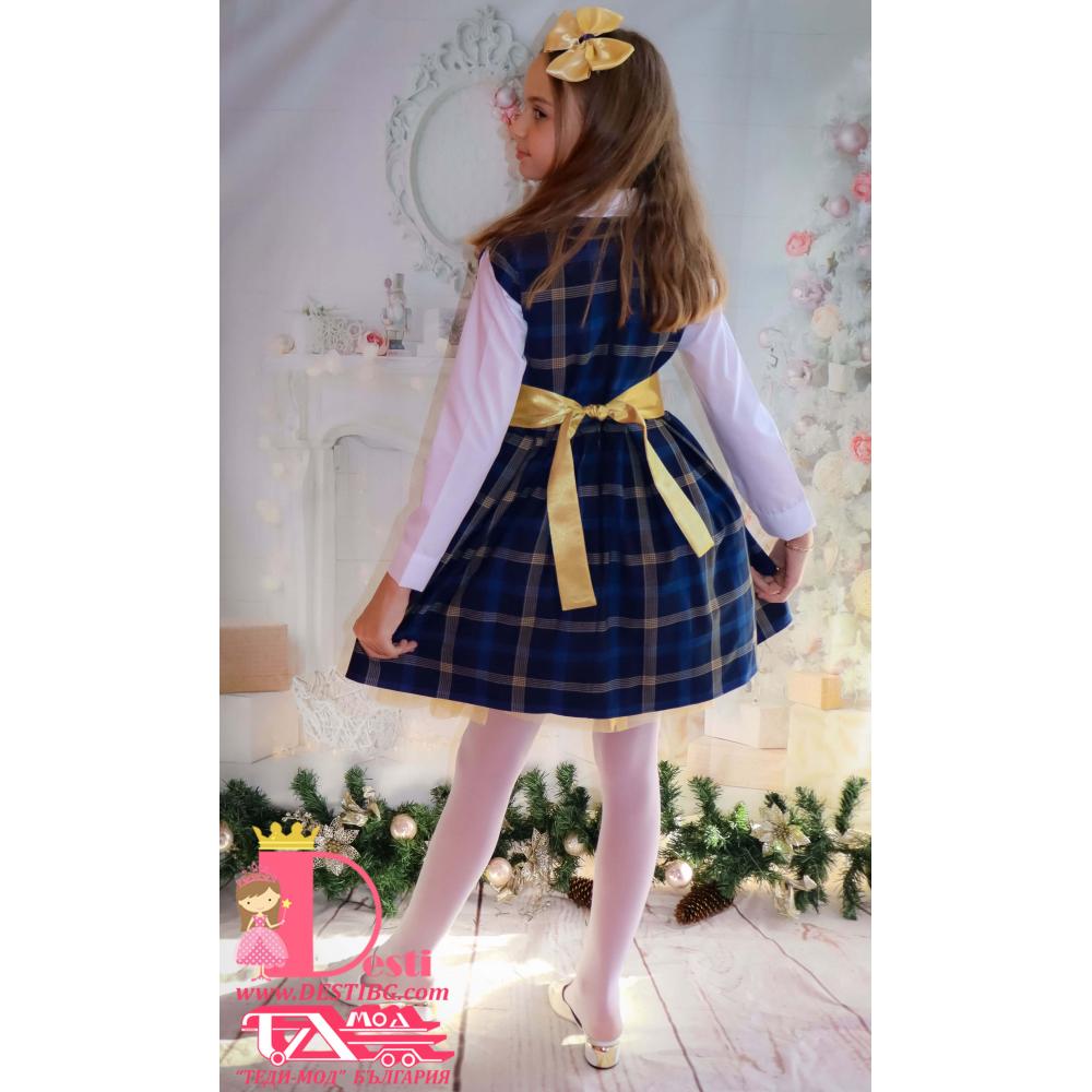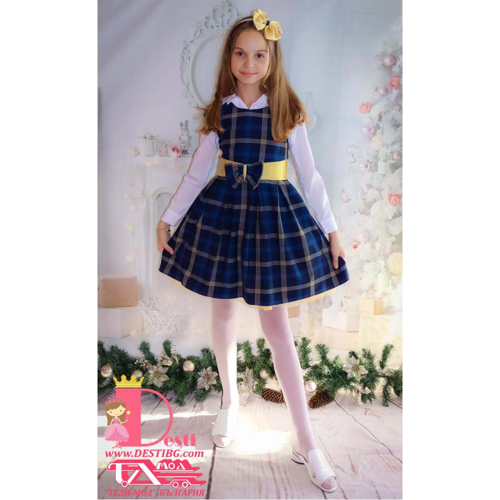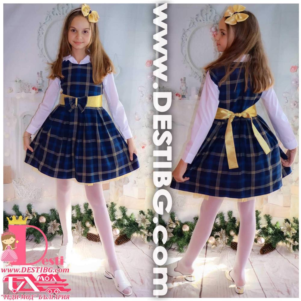 2.Роклята е изработена от лек вълнен плат каре, подходяща да се носи с долна блузка или ризка.