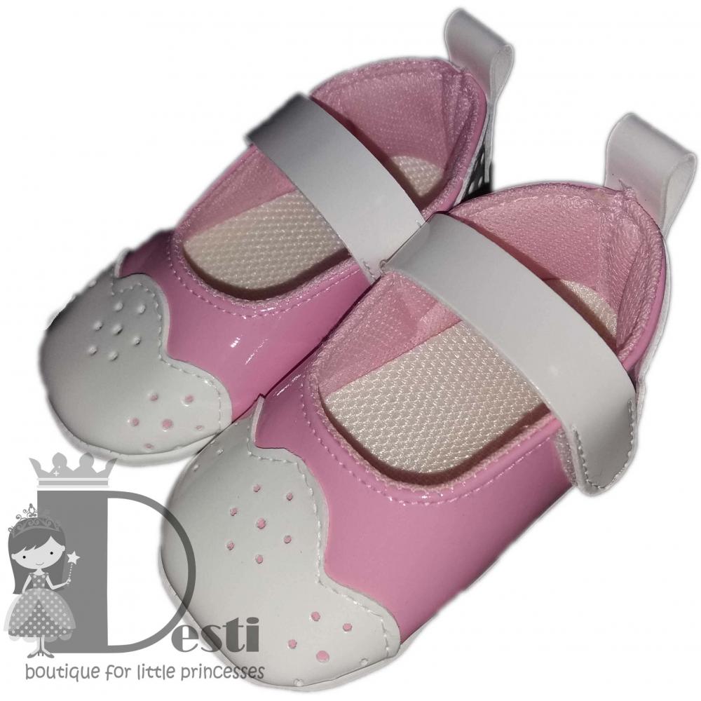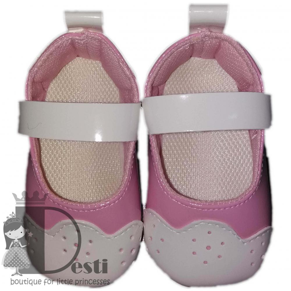 Кожени розови обувки с панделка