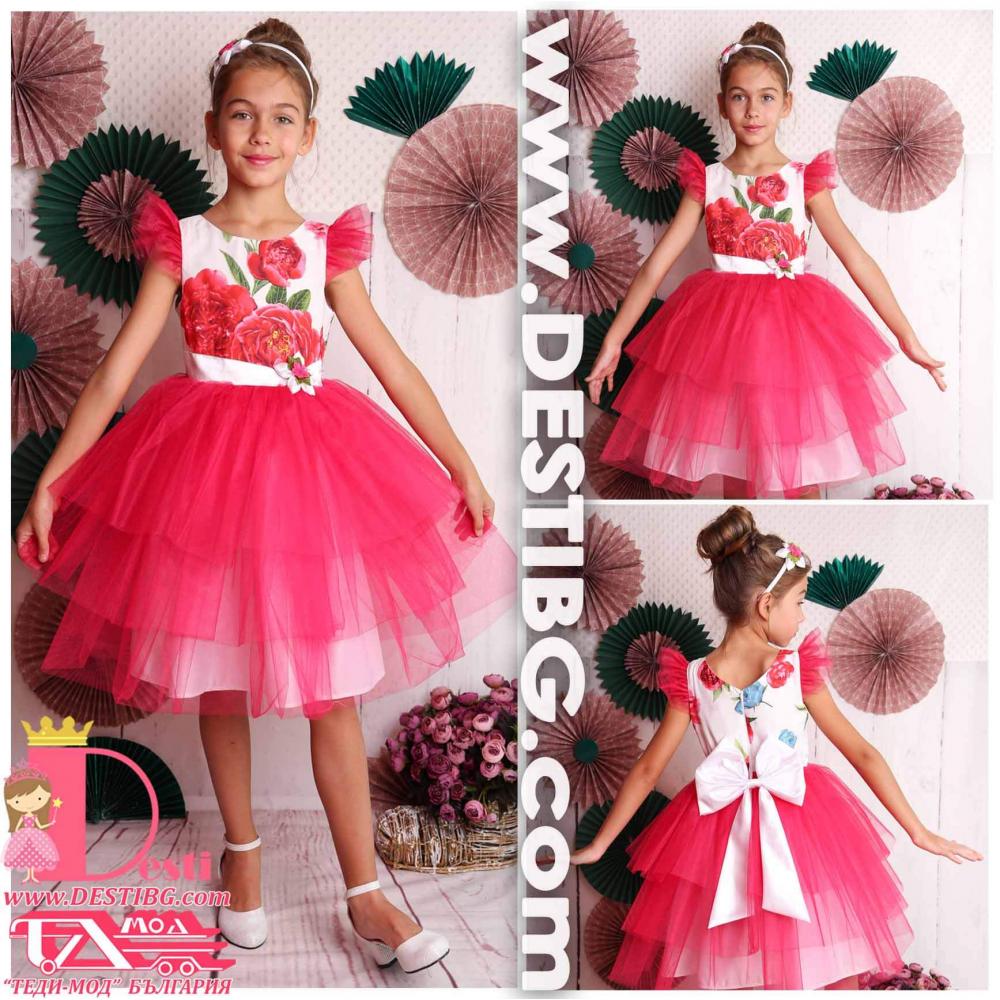 Детска официална туту рокля Теди-Мод с голяма панделка - идеална за всеки специален повод на Вашите деца