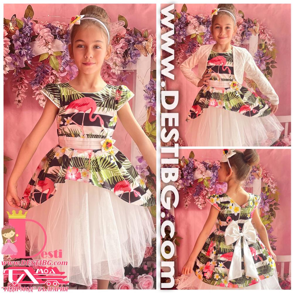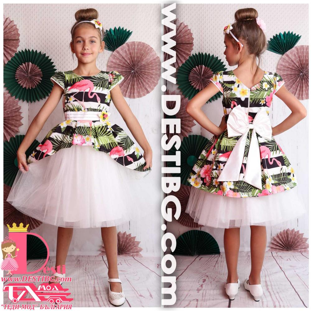 Детска официална рокля Теди-Мод с голяма панделка - идеална за всеки специален повод на Вашите деца