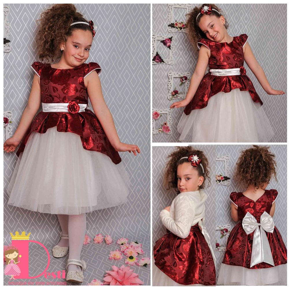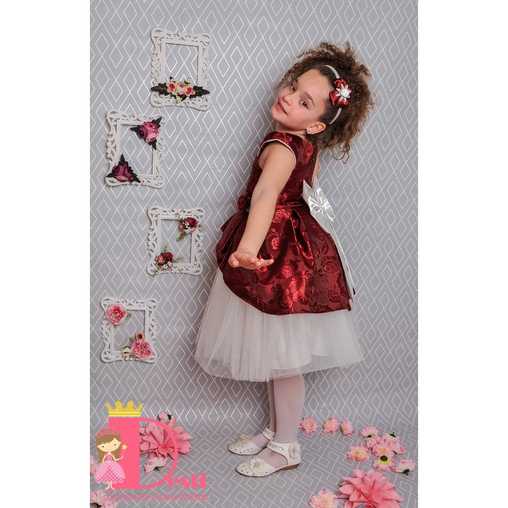 Детска официална рокля Теди-Мод с голяма панделка - идеална за всеки специален повод на Вашите деца