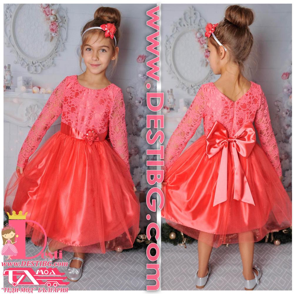 Детска официална рокля тип "туту" Теди-Мод с голяма панделка - идеална за всеки специален повод на Вашите деца