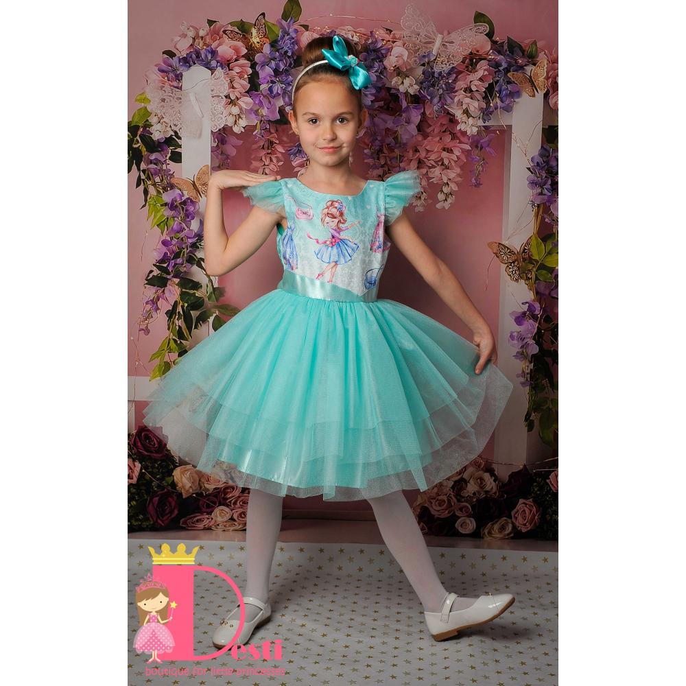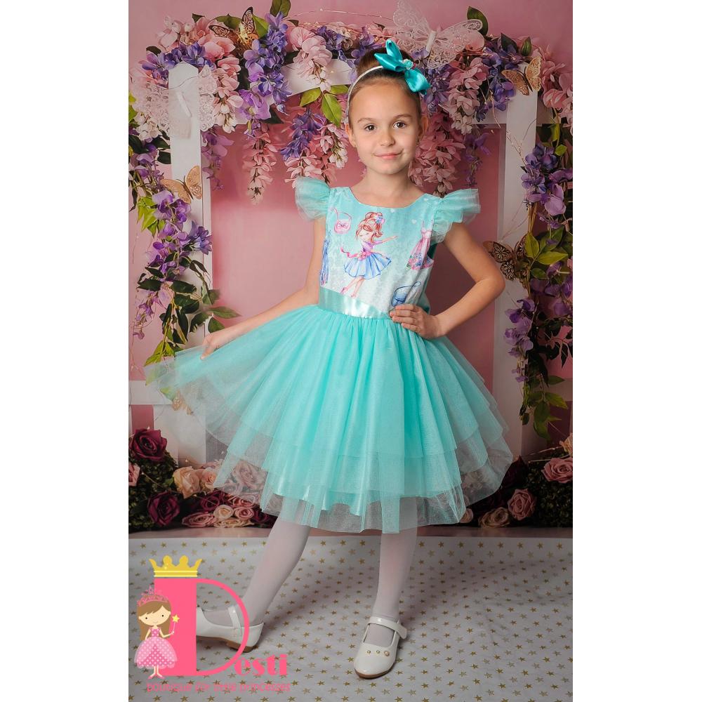 Детска официална рокля тип туту Теди-Мод с голяма панделка - идеална за всеки специален повод на Вашите деца