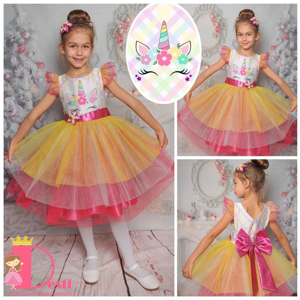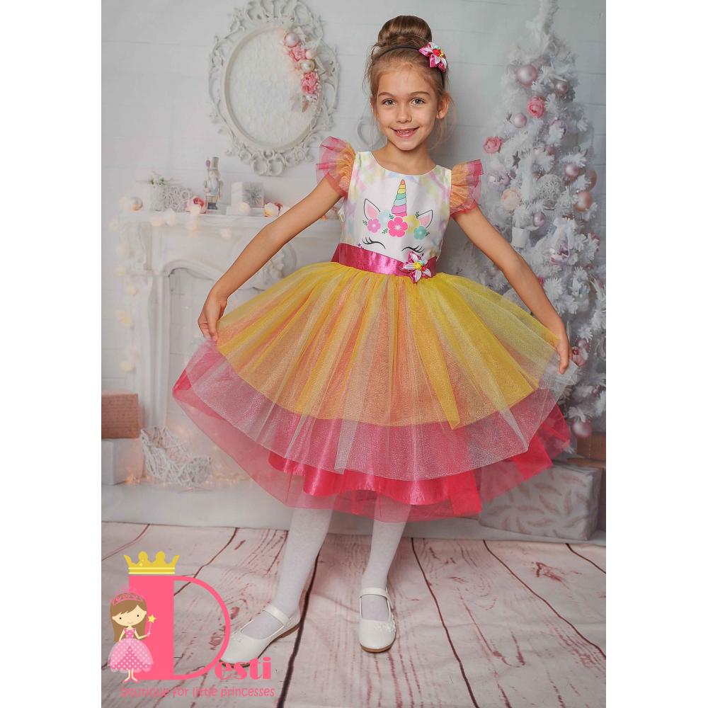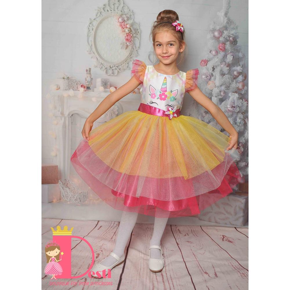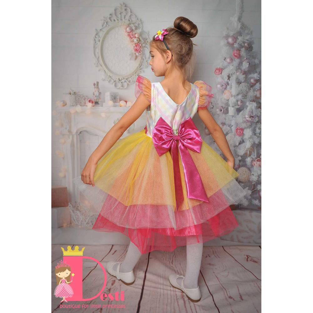 Детска официална рокля тип туту Теди-Мод с голяма панделка - идеална за всеки специален повод на Вашите деца