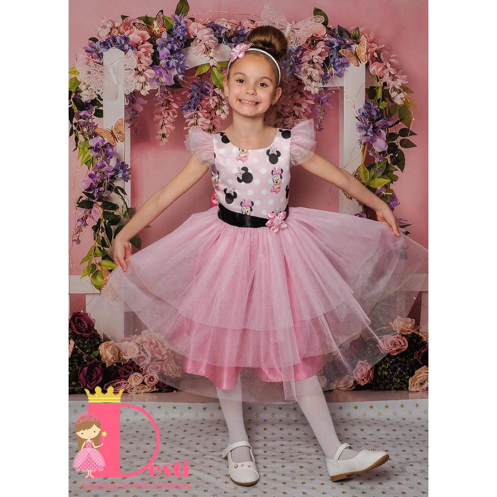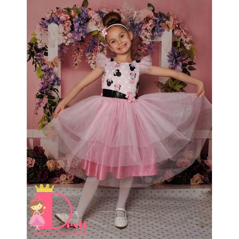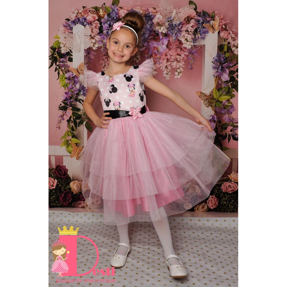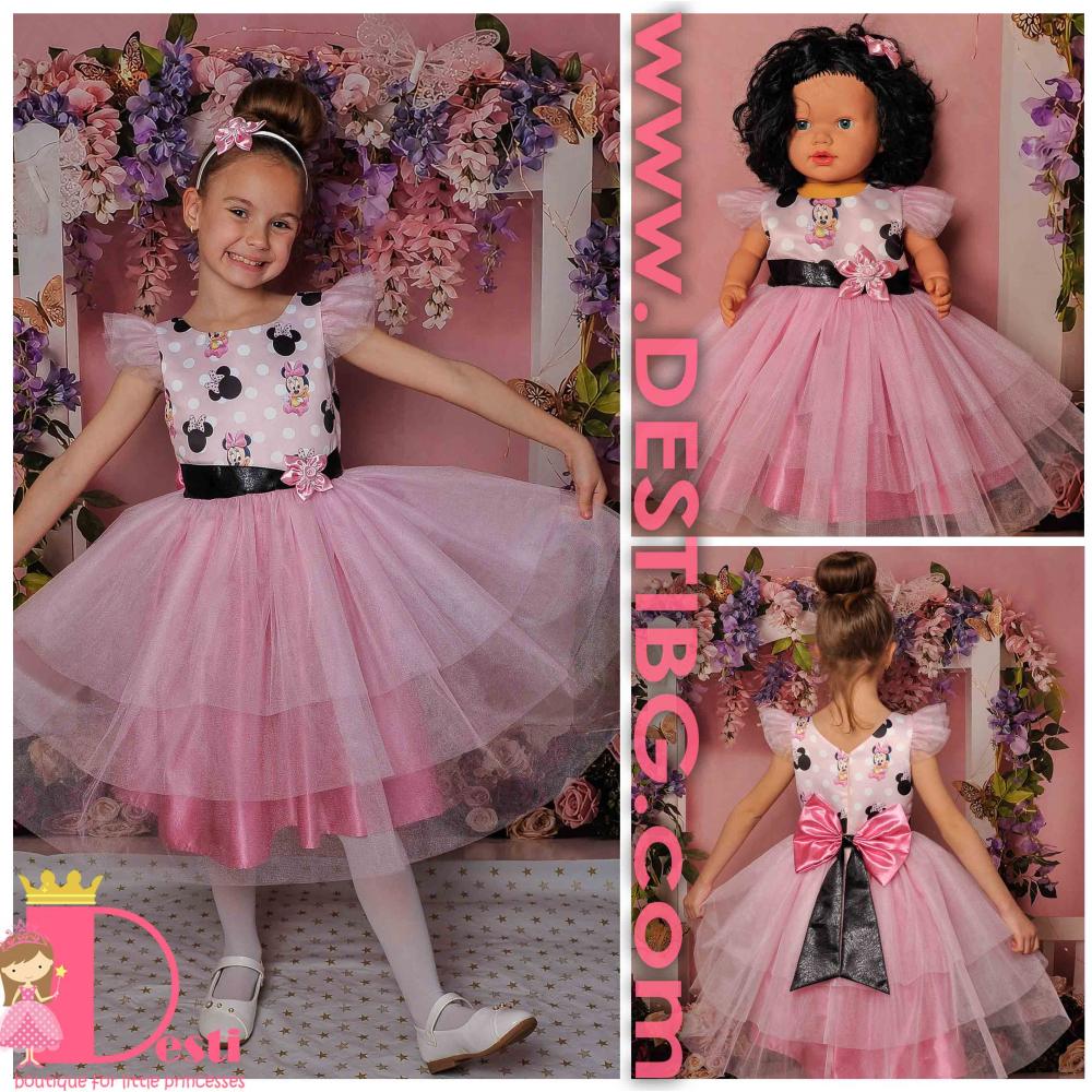Детска официална рокля тип туту Теди-Мод с голяма панделка - идеална за всеки специален повод на Вашите деца