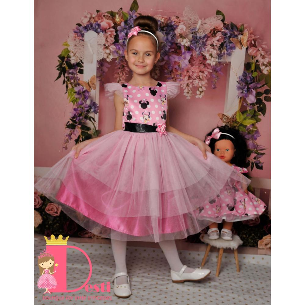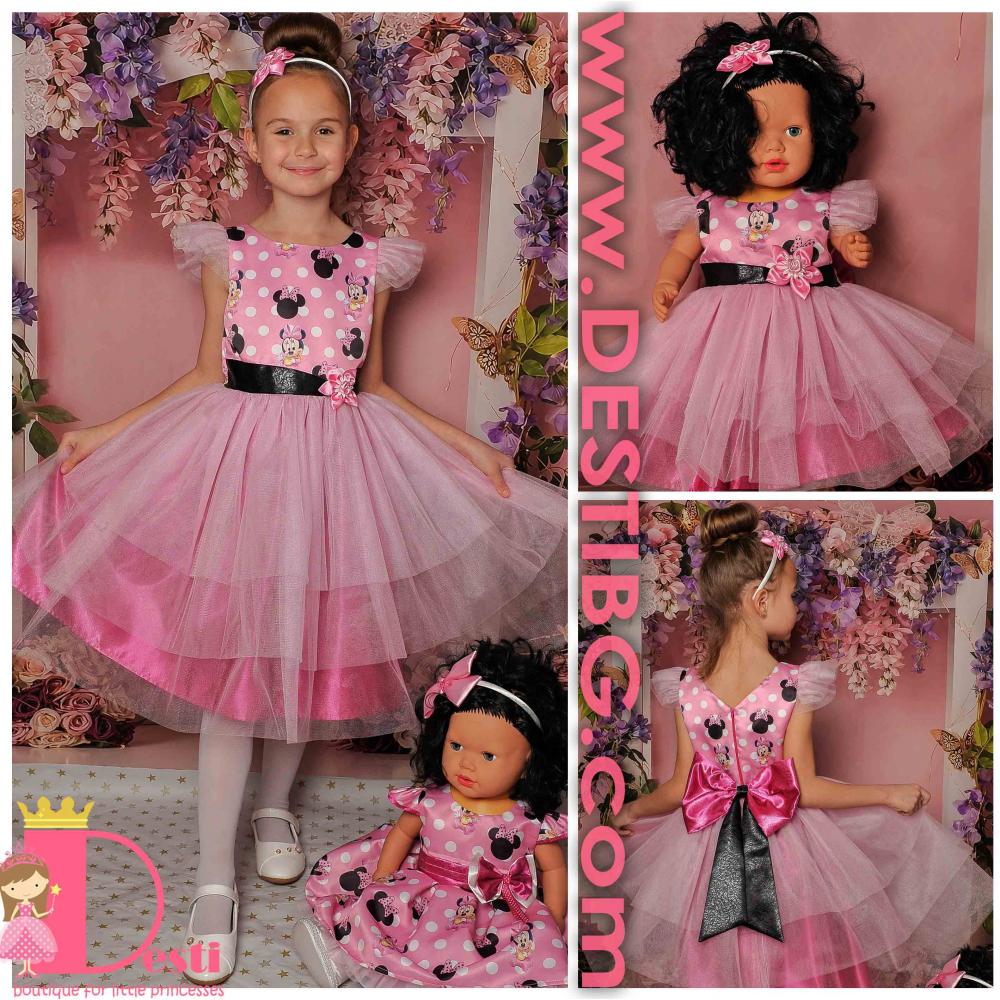 Детска официална рокля тип туту Теди-Мод с голяма панделка - идеална за всеки специален повод на Вашите деца