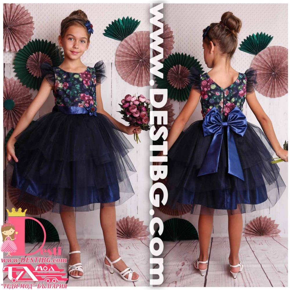 Детска официална туту рокля Теди-Мод с голяма панделка - идеална за всеки специален повод на Вашите деца