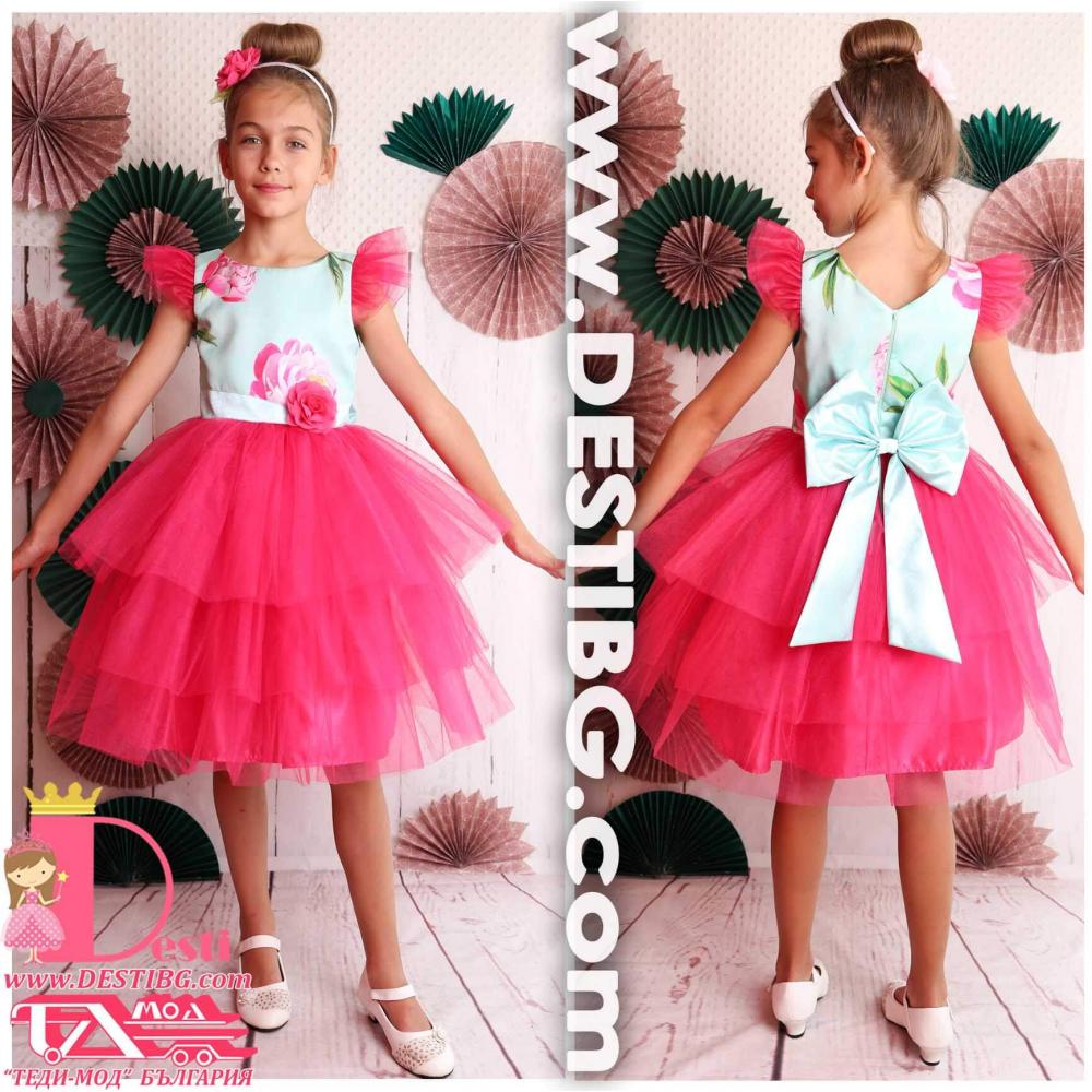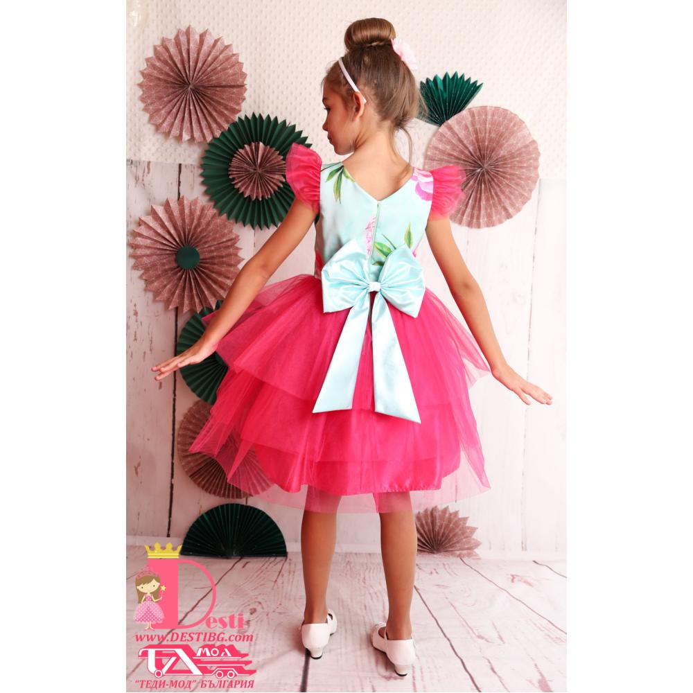 Детска официална туту рокля Теди-Мод с голяма панделка - идеална за всеки специален повод на Вашите деца