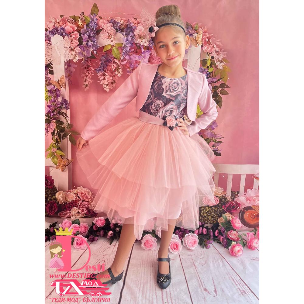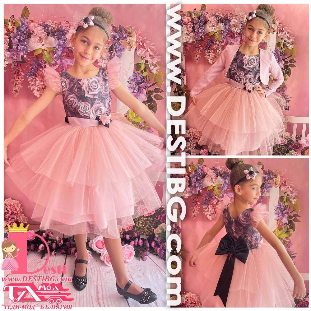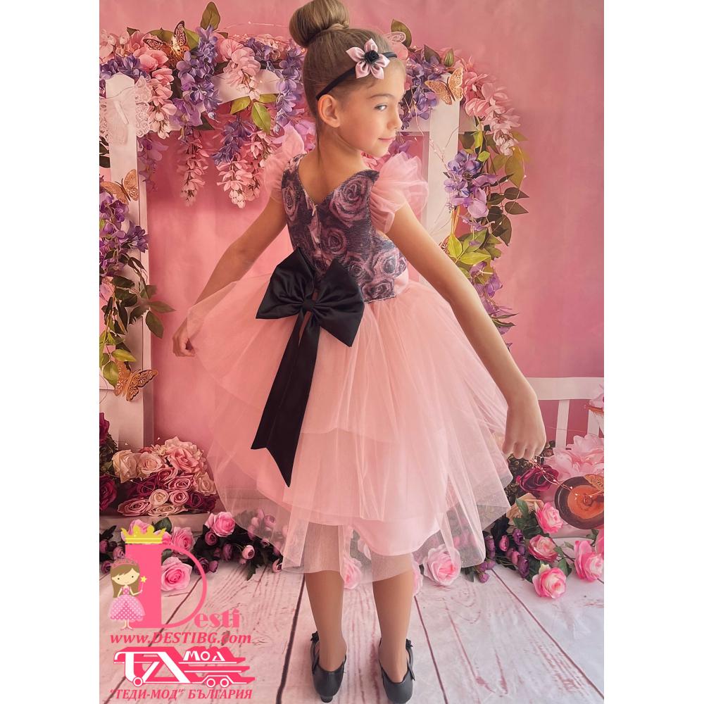 Детска официална туту рокля Теди-Мод с голяма панделка - идеална за всеки специален повод на Вашите деца