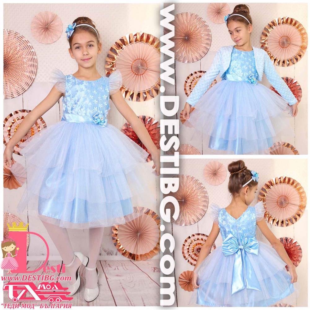 Детска официална туту рокля Теди-Мод с голяма панделка - идеална за всеки специален повод на Вашите деца