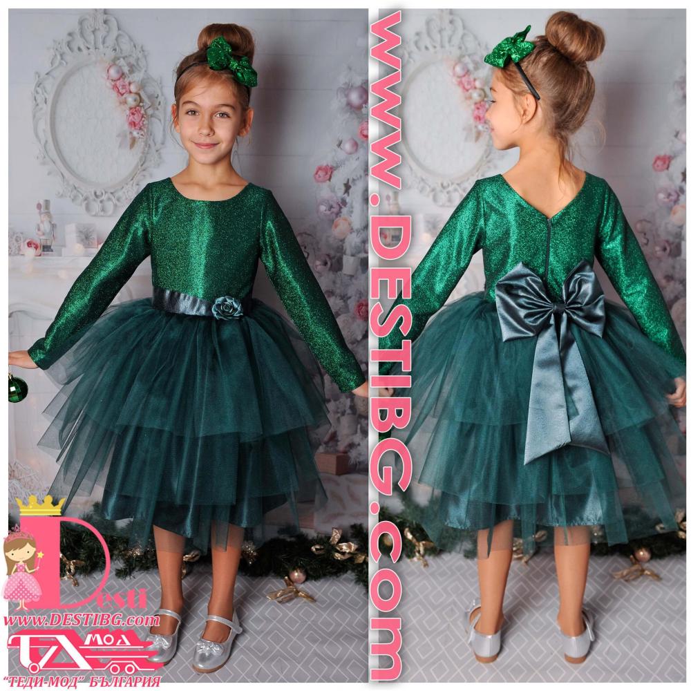 Детска официална туту рокля Теди-Мод с голяма панделка - идеална за всеки специален повод на Вашите деца