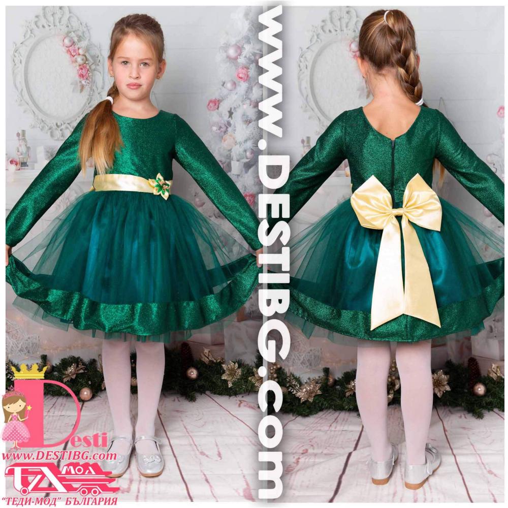 Детска официална туту рокля Теди-Мод с голяма панделка - идеална за всеки специален повод на Вашите деца
