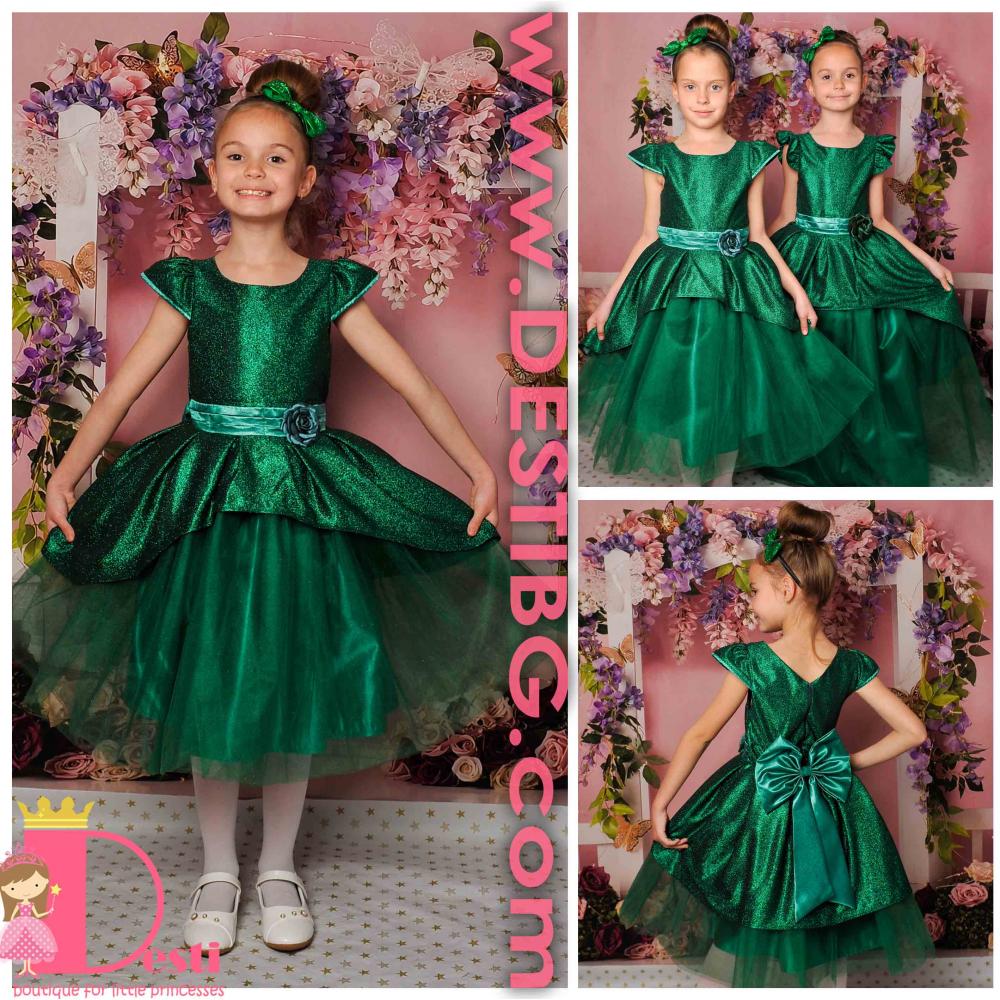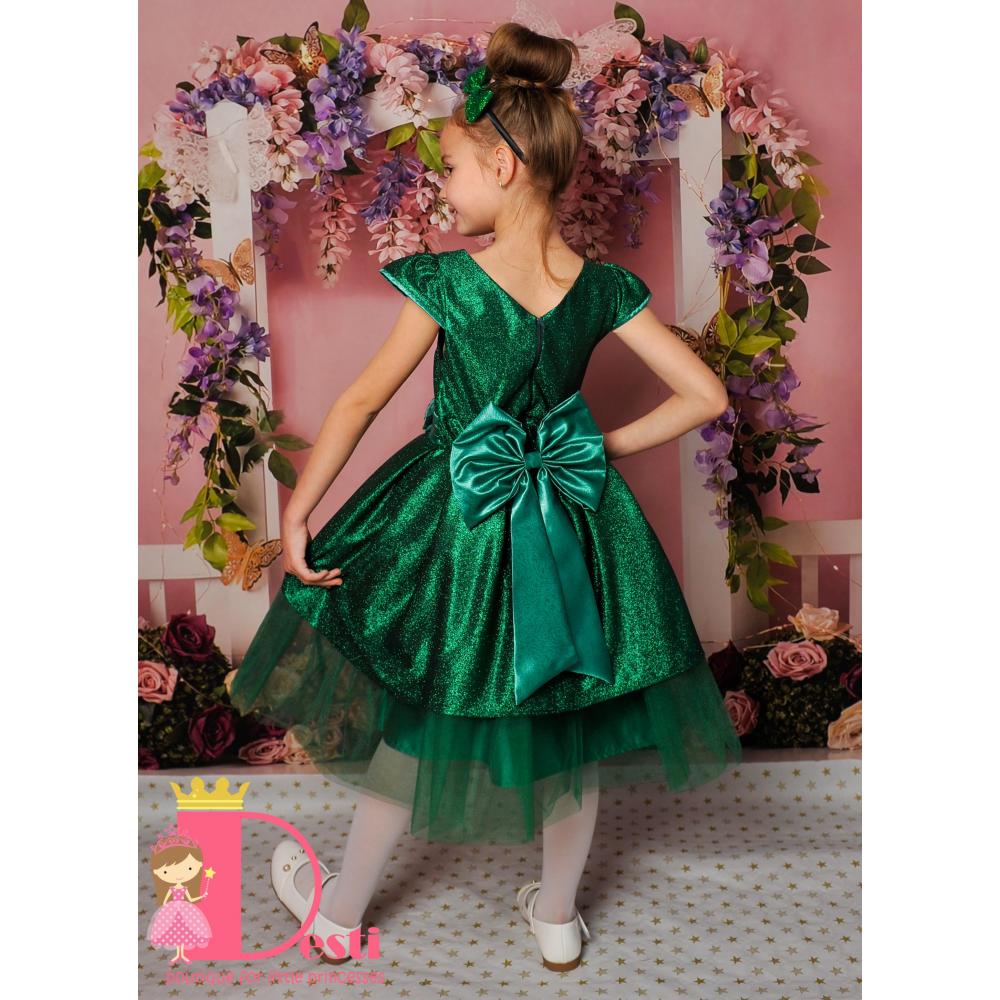 Детска официална рокля Теди-Мод с голяма панделка - идеална за всеки специален повод на Вашите деца